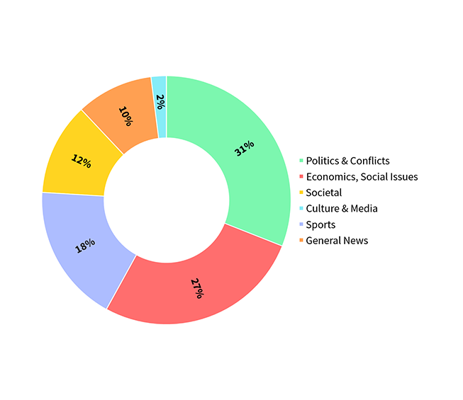 The news is presented visually using maps, graphs and charts, timelines and biographies, technical datasheets, diagrams and country profiles, etc.